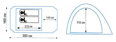 Purpose: camping, number of places: 4, features: UV protection, ventilation holes, wind / snow skirt, inside pockets, inner tent, canopy, taped seams, assembly type: outer frame