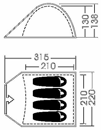 Purpose: camping, number of places: 4, features: UV protection, ventilation holes, wind / snow skirt, inside pockets, inner tent, canopy, taped seams, assembly type: outer frame