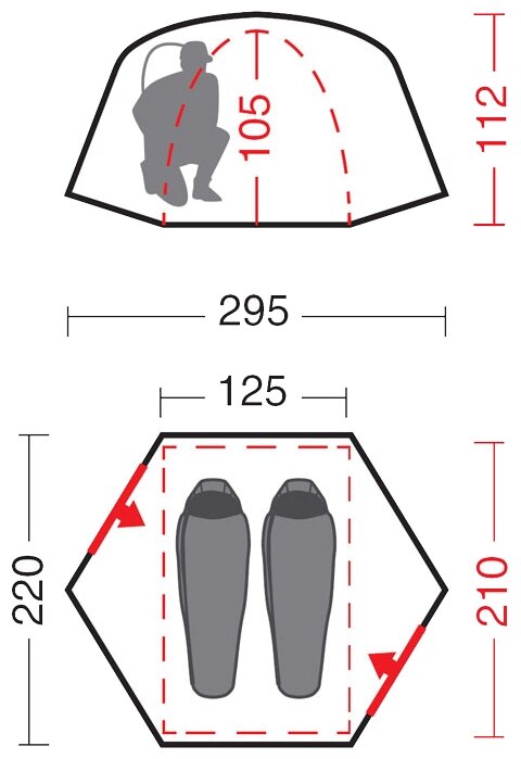 Purpose: camping, number of places: 4, features: UV protection, ventilation holes, wind / snow skirt, inside pockets, inner tent, canopy, taped seams, assembly type: outer frame