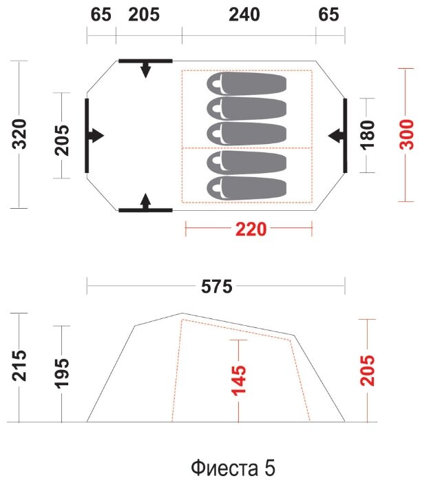 Purpose: camping, number of places: 5, features: air vents, inner pockets, inner tent, canopy, windows, taped seams, assembly type: outer frame, tent water resistance: 3000 mm w.c. st., count