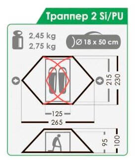Purpose: trekking, number of places: 2, features: ventilation holes, inner tent, taped seams, assembly type: outer frame, awning water resistance: 6000 mm of water. st., number of rooms: 1, number of rooms