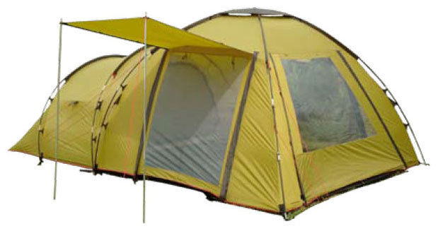 Purpose: camping, number of places: 4, features: UV protection, ventilation holes, wind / snow skirt, inside pockets, inner tent, canopy, taped seams, assembly type: outer frame