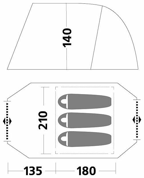 Purpose: camping, number of places: 4, features: UV protection, ventilation holes, wind / snow skirt, inside pockets, inner tent, canopy, taped seams, assembly type: outer frame