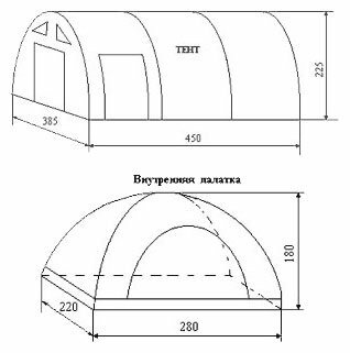 Purpose: camping, number of places: 4, features: UV protection, ventilation holes, wind / snow skirt, inside pockets, inner tent, canopy, taped seams, assembly type: outer frame