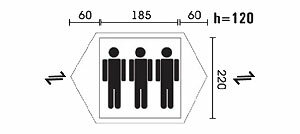 Purpose: trekking, number of seats: 3, features: UV protection, ventilation holes, inner pockets, inner tent, taped seams, reinforced corners, assembly type: outer frame, awning water resistance: 3000