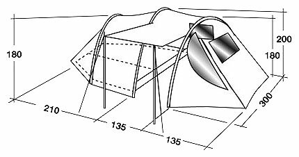 Purpose: camping, number of places: 4, features: UV protection, ventilation holes, wind / snow skirt, inside pockets, inner tent, canopy, taped seams, assembly type: outer frame
