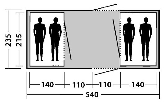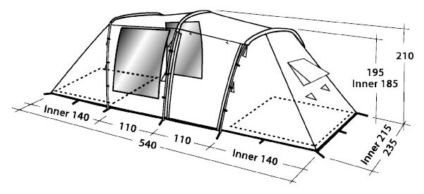 Purpose: camping, number of places: 4, features: air vents, inner pockets, inner tent, canopy, fireproof coating, windows, taped seams, reinforced corners, assembly type: outer frame,