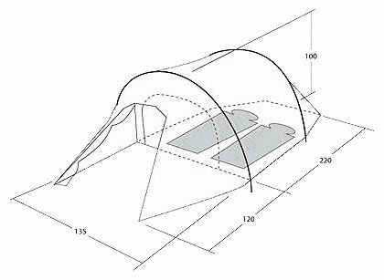 Purpose: trekking, number of seats: 2, features: UV protection, ventilation holes, inner tent, taped seams, assembly type: outer frame, awning water resistance: 3000 mm w.c. Art., number of rooms: 1, if
