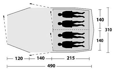 Purpose: camping, number of places: 4, features: air vents, inner pockets, inner tent, canopy, windows, taped seams, assembly type: outer frame, awning water resistance: 3000 mm w.c. st., count