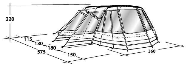 Purpose: camping, number of places: 5, features: air vents, wind / snow skirt, inside pockets, inner tent, fireproof coating, windows, taped seams, reinforced corners