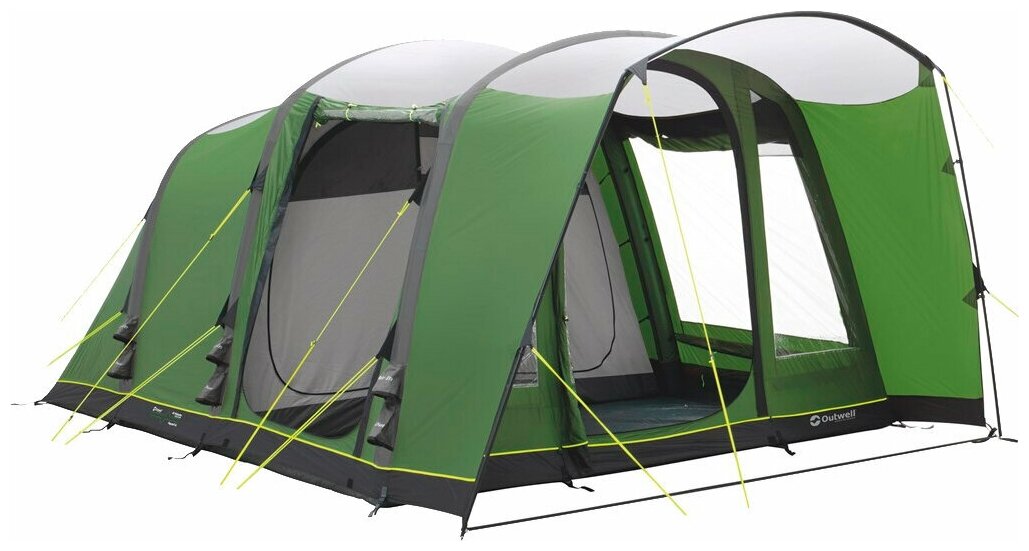 Purpose: camping, number of places: 5, features: air vents, inner pockets, inner tent, canopy, fireproof treatment, windows, taped seams, reinforced corners, build type: outer frame,