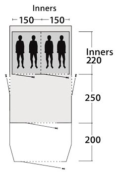Purpose: camping, number of places: 4, features: ventilation holes, inner pockets, inner tent, windows, taped seams, assembly type: outer frame, awning water resistance: 4000 mm w.c. art., quantities