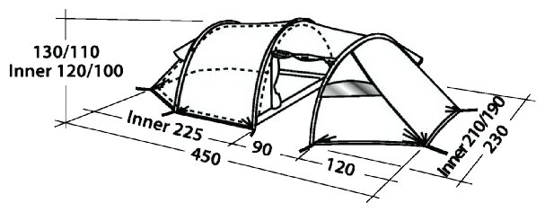 Purpose: camping, number of places: 4, features: ventilation holes, inner tent, reinforced corners, assembly type: outer frame, number of rooms: 1, number of vestibules: 1, weight: 11.80 kg, water resistance days