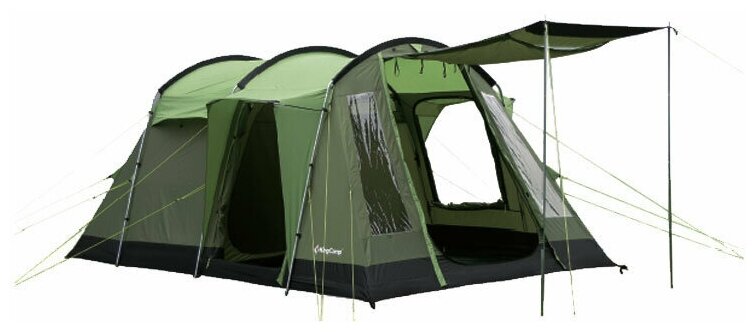 Purpose: camping, number of places: 5, features: air vents, inner pockets, inner tent, canopy, windows, taped seams, reinforced corners, assembly type: outer frame, tent water resistance: 30