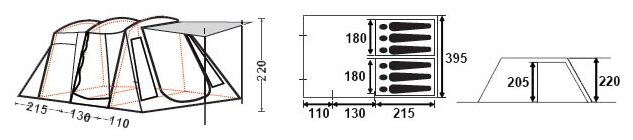 Purpose: camping, number of places: 6, features: ventilation holes, inside pockets, inner tent, canopy, windows, taped seams, reinforced corners, build type: outer frame, tent water resistance: 30