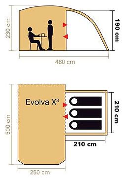 Purpose: camping, number of places: 3, features: ventilation holes, inner pockets, inner tent, canopy, fireproof impregnation, windows, welded seams, build type: outer frame, water resistance