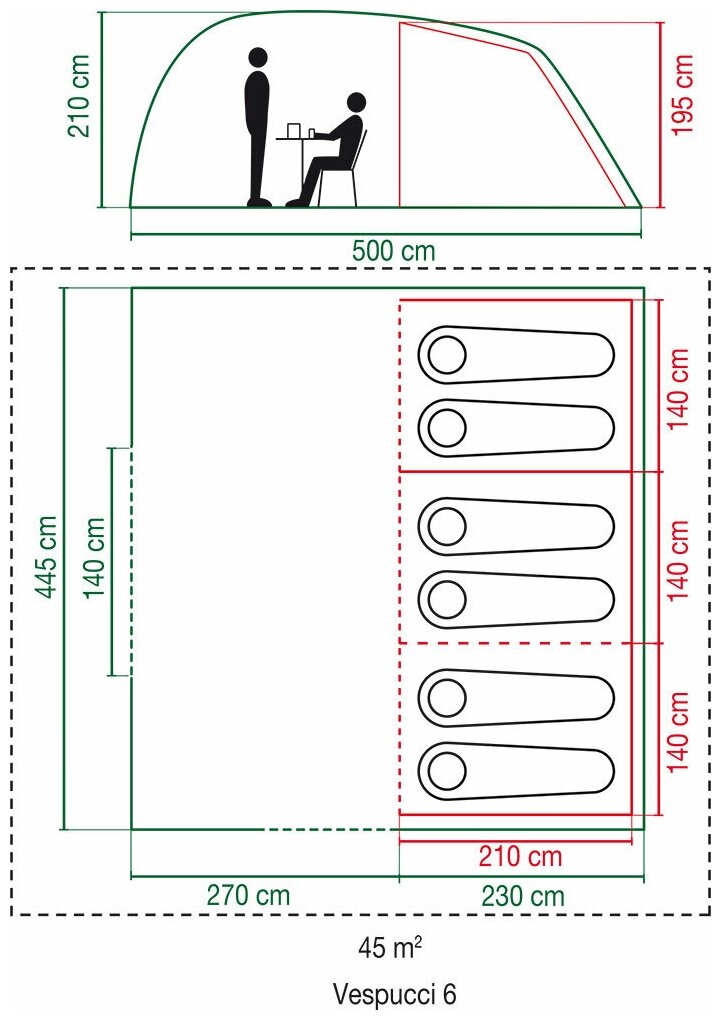 | Inner tent dimensionsLxWxH: |