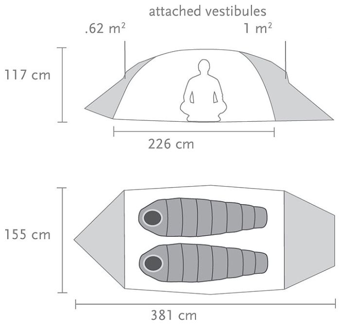 Purpose: trekking, number of places: 2, features: air vents, inner tent, taped seams, assembly type: inner frame, tent water resistance: 2000 mm w.c. Art., number of rooms: 1, number