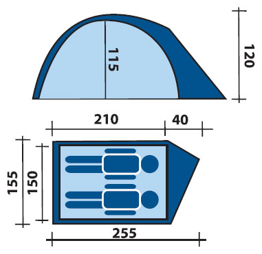 | Inner tent dimensionsLxWxH: |