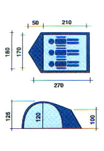 Purpose: trekking, number of seats: 3, features: ventilation holes, wind / snow skirt, inside pockets, inner tent, taped seams, assembly type: inner frame, waterproof