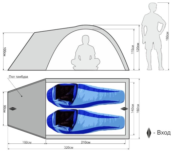 Purpose: trekking, number of seats: 2, features: ventilation holes, wind / snow skirt, inside pockets, inner tent, windows, welded seams, assembly type: external frame, waterproof