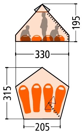 Purpose: trekking, number of seats: 4, features: ventilation holes, inside pockets, assembly type: internal frame, awning water resistance: 4000 mm w.c. Art., number of rooms: 1, weight: 3.48 kg, water resistance of the bottom