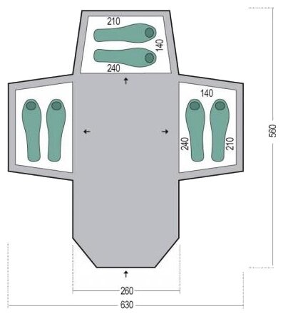 Purpose: camping, number of places: 6, features: UV protection, ventilation holes, inner pockets, inner tent, welded seams, reinforced corners, build type: outer frame, tent water resistance: 3000