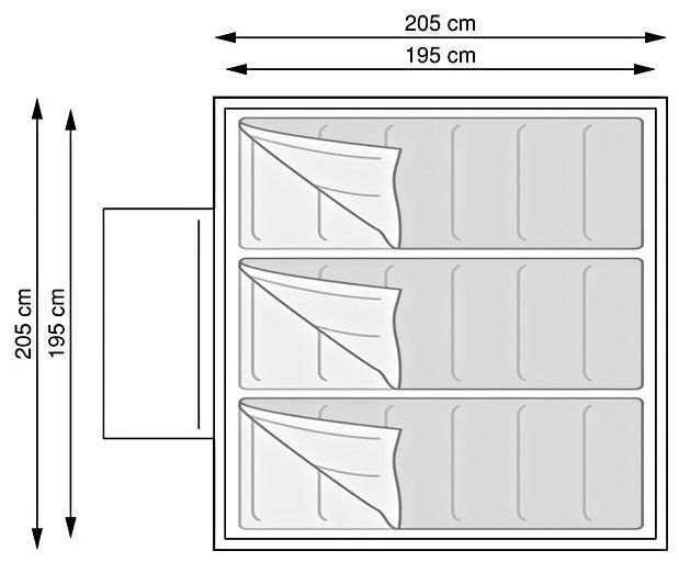 Purpose: camping, number of places: 4, features: UV protection, ventilation holes, wind / snow skirt, inside pockets, inner tent, canopy, taped seams, assembly type: outer frame