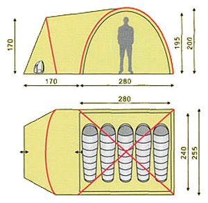 Purpose: camping, number of places: 5, features: ventilation holes, inner pockets, inner tent, canopy, windows, taped seams, assembly type: inner frame, tent water resistance: 2000 mm w.c. Art.,