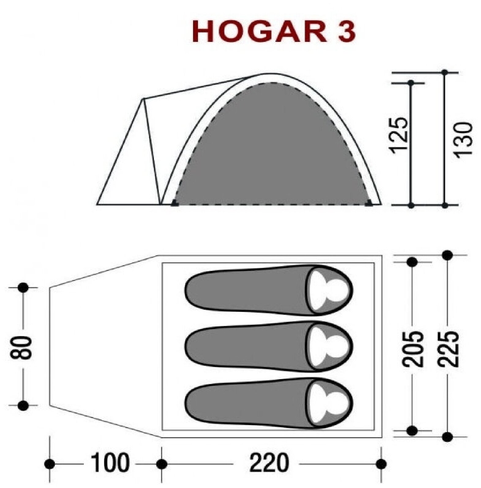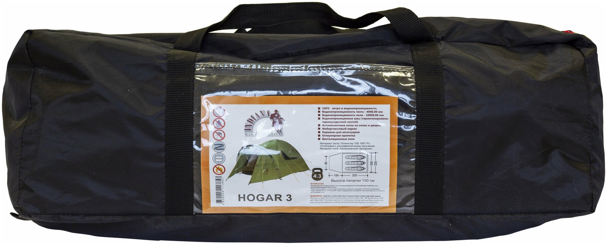 Purpose: trekking, number of places: 3, features: UV protection, ventilation holes, inner pockets, inner tent, canopy, fireproof impregnation, windows, welded seams, taped seams, awning, reinforced