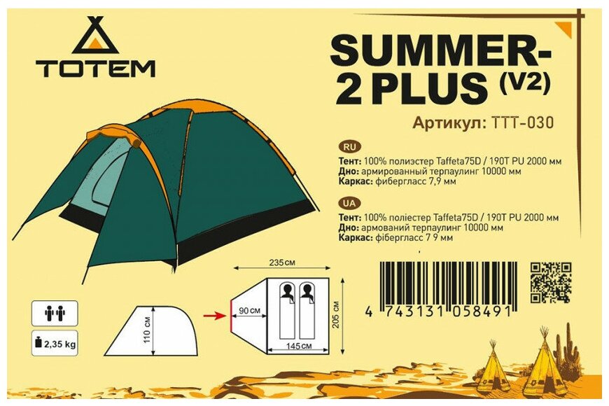 Purpose: trekking, number of seats: 7 or more, features: ventilation holes, taped seams, awning water resistance: 2000 mm w.c. Art., number of rooms: 1, weight: 2.35 kg, frame material: fiberglass, complete set