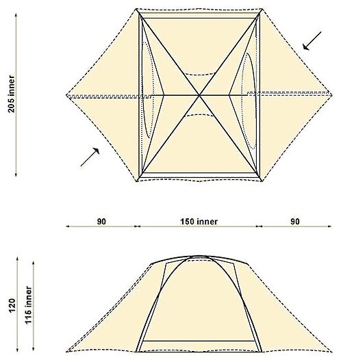 | Inner tent dimensionsLxWxH: |
