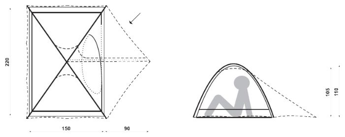 Purpose: camping, number of places: 4, features: UV protection, ventilation holes, wind / snow skirt, inside pockets, inner tent, canopy, taped seams, assembly type: outer frame