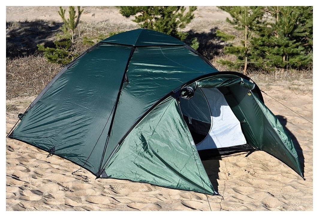 Purpose: camping, number of places: 4, features: UV protection, ventilation holes, wind / snow skirt, inside pockets, inner tent, canopy, taped seams, assembly type: outer frame