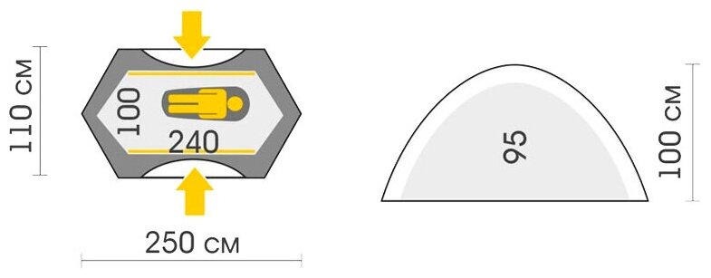 | Inner tent dimensionsLxWxH: |