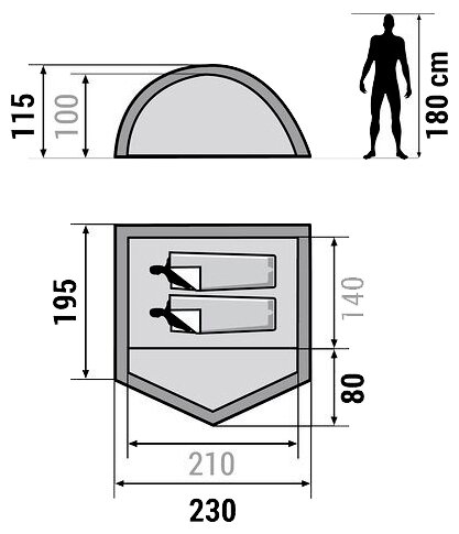 | Inner tent dimensionsLxWxH: |