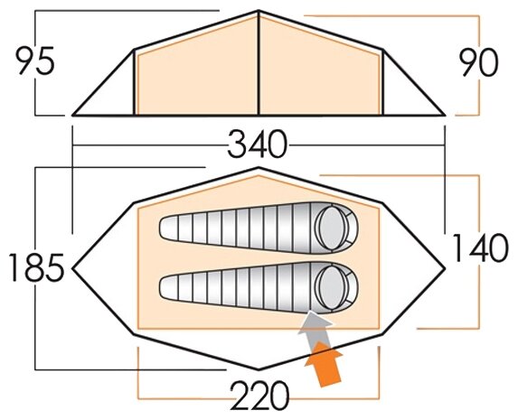 Inner tent dimensionsLxWxH: