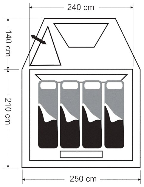 Purpose: trekking, number of places: 4, features: ventilation holes, inner tent, assembly type: outer frame, number of rooms: 1, number of vestibules: 1, weight: 8.50 kg, frame material: fiberglass,