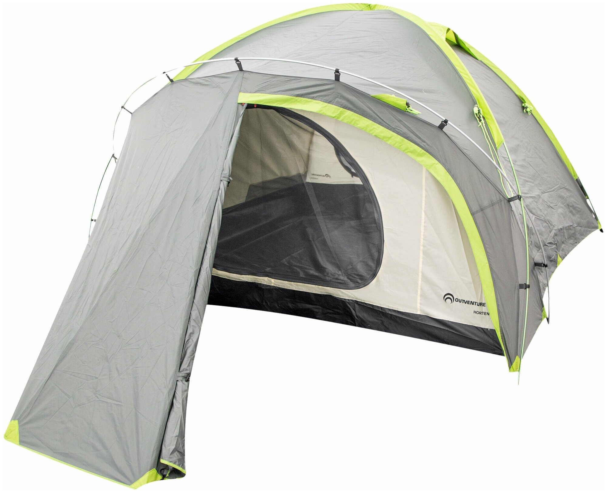 Purpose: camping, number of places: 4, features: UV protection, ventilation holes, wind / snow skirt, inside pockets, inner tent, canopy, taped seams, assembly type: outer frame