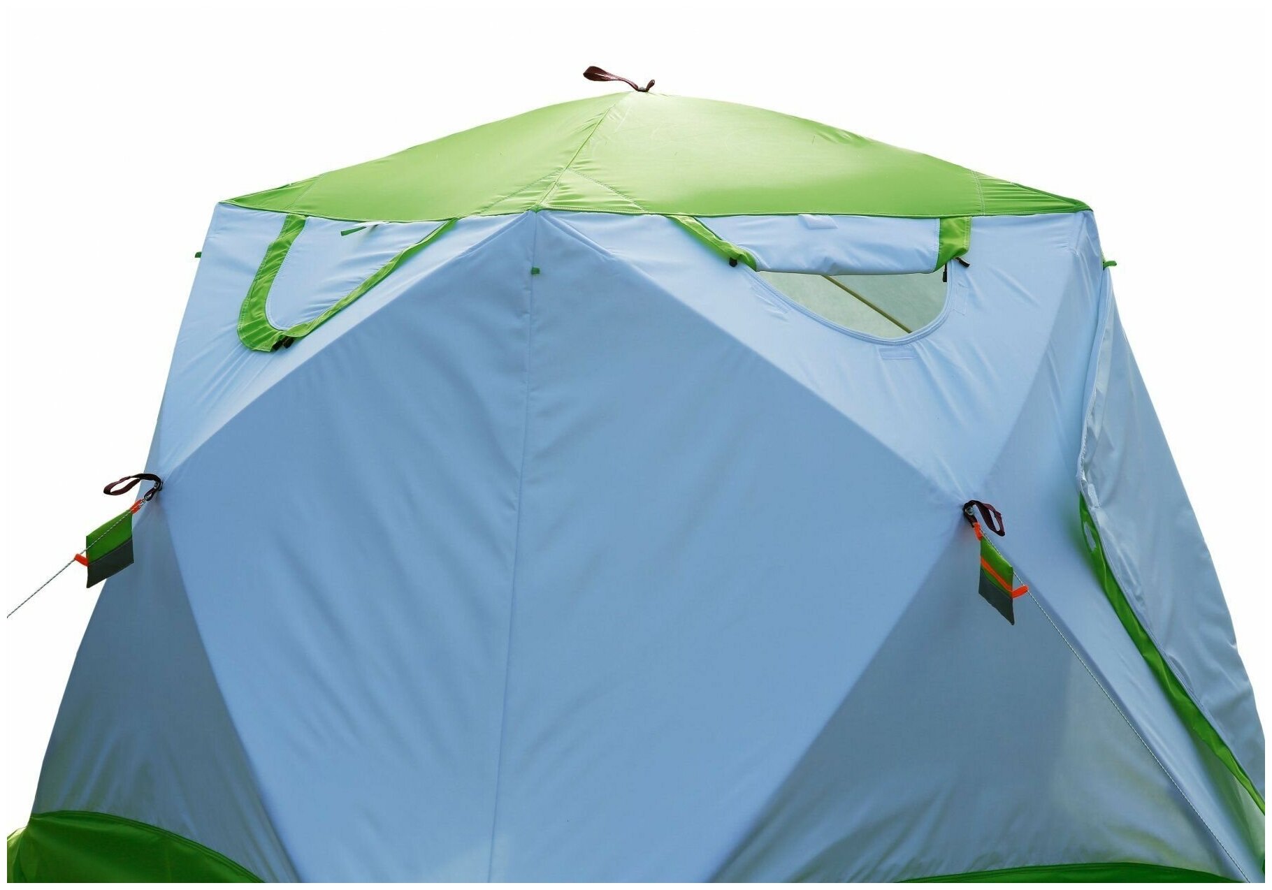 Purpose: for fishing, number of seats: 3, features: ventilation holes, wind / snow skirt, inside pockets, fireproof impregnation, windows, assembly type: inner frame, awning water resistance: 1