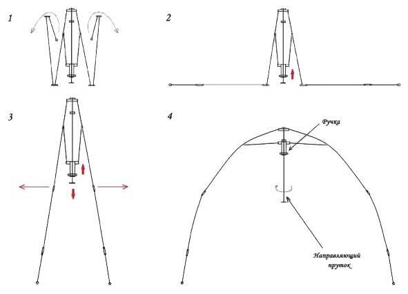 - Tent - External awning, internal awning with bottom, frame; - Pegs - 1 set; - Screwdrivers - 1 set; - Rope guy - 30 m; - Shelf-grid under the dome - 1 pc.; - Bag - 1 piece; - Fixing bolt - 1 piece; - Spare parts kit - 1 pc.; - Racks by
