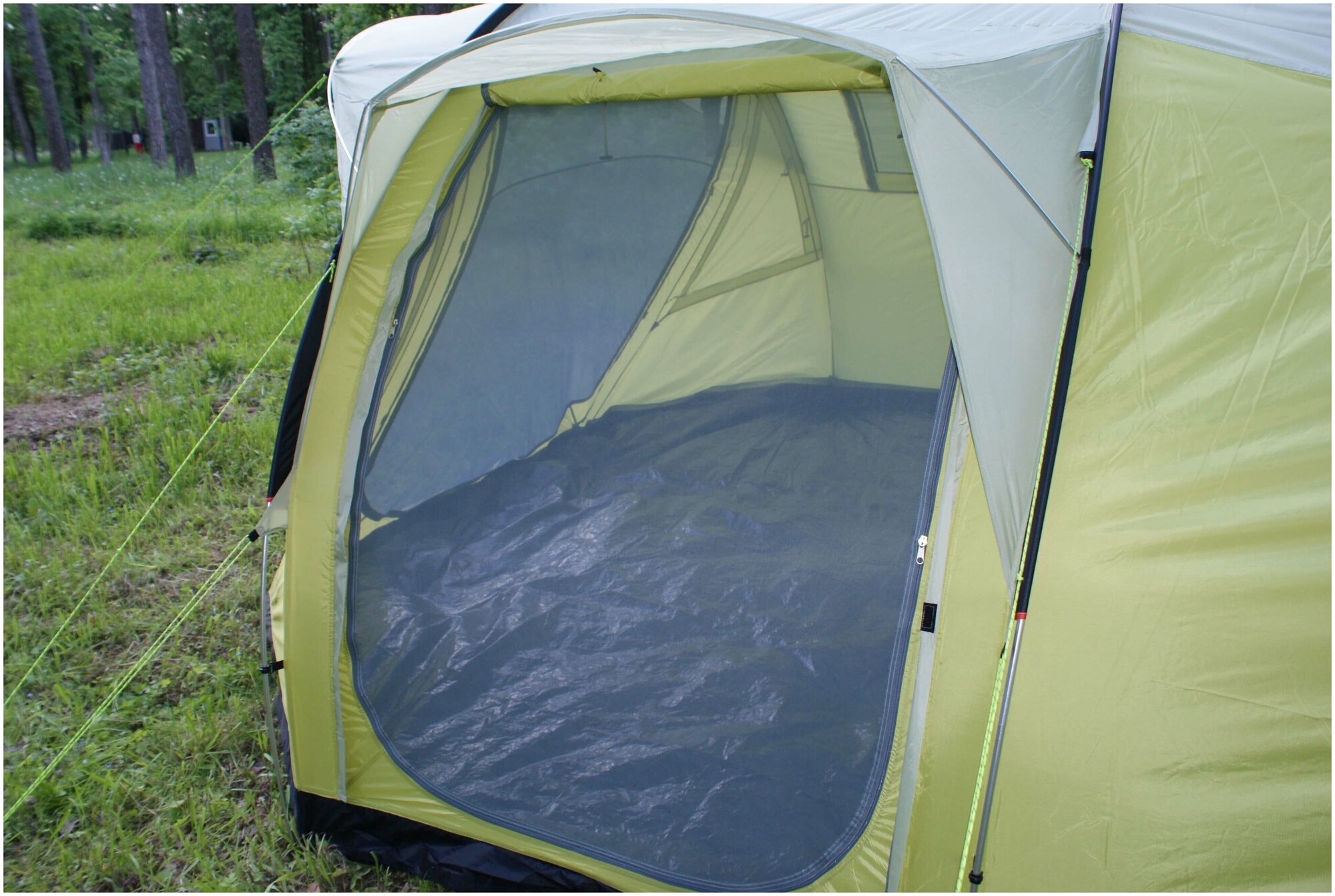 Purpose: camping, number of places: 5, features: ventilation holes, inner pockets, inner tent, canopy, fireproof impregnation, taped seams, assembly type: outer frame, awning water resistance: