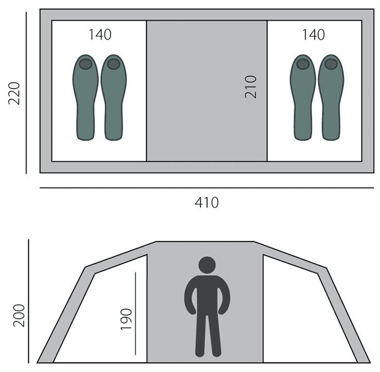 Purpose: camping, number of places: 4, features: UV protection, ventilation holes, inner tent, assembly type: outer frame, awning water resistance: 4000 mm w.c. Art., number of rooms: 2, number of vestibules: