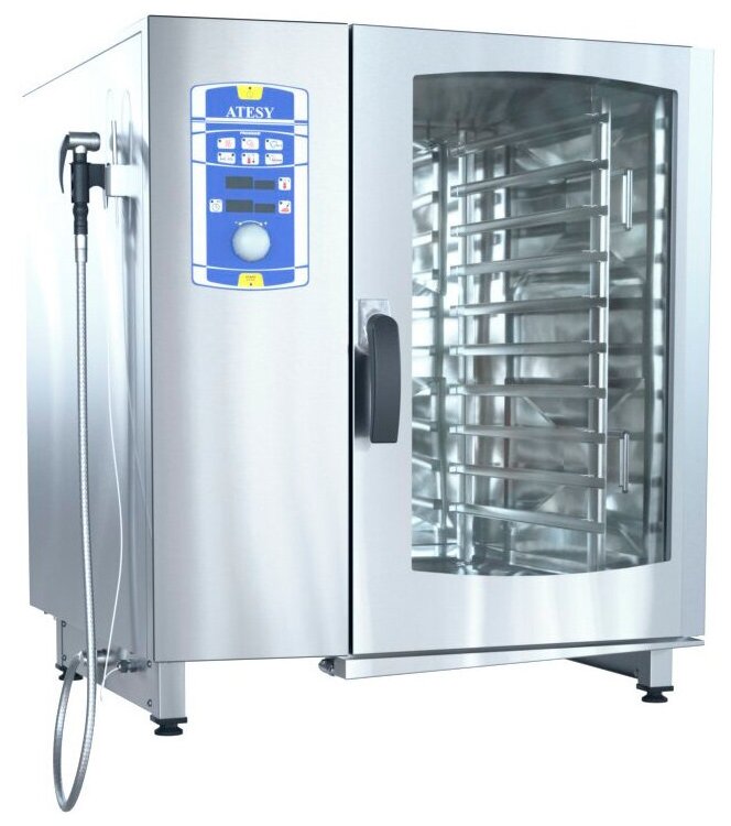 Combi steamer - 1 pc, guides - 2 pcs, shower device - 1 pc, tap PKM.01.000.048 - 1 pc, locknut with flange 1/2 nick. VTr.655 - 2 pcs, transition SER P-4237n gr. 1/2 n - 3/4 in - 1 pc, water connection Flexiline G1/2 G/D 0.4m - 3 pcs