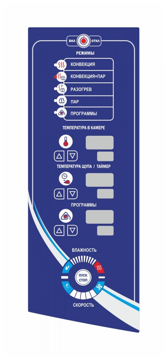 Type: electric, control: electronic, steam generation: boiler, programming function, features: double glass door, chamber lighting, operating modes: combined, convection, low temperature