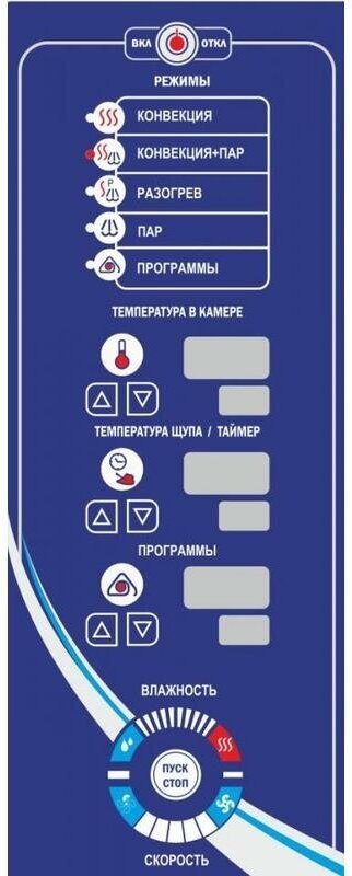 Type: electric, control: electronic, steam generation: injection, programming function, features: double glass door, chamber illumination, operating modes: combined, convection, low temperature