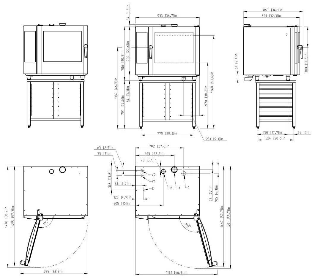 Combi steamer - 1 pc, guides - 2 pcs, shower device - 1 pc, tap PKM.01.000.048 - 1 pc, locknut with flange 1/2 nick. VTr.655 - 2 pcs, transition SER P-4237n gr. 1/2 n - 3/4 in - 1 pc, water connection Flexiline G1/2 G/D 0.4m - 3 pcs