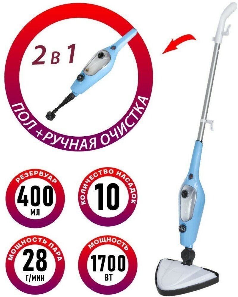 Type: steam mop, design: floor standing, power: 1700 W, water tank volume: 0.40 l, set includes: brush attachment