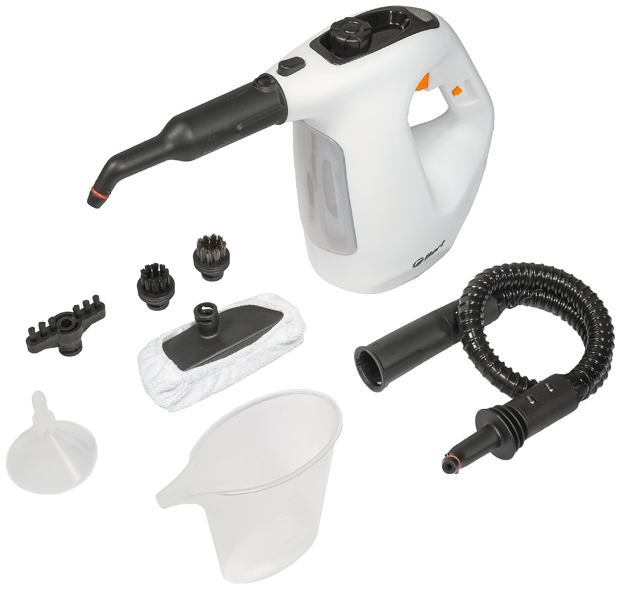 Small round resin bristle brush head, wide resin bristle brush head, flexible steam hose, window/door cleaner, terry cloth