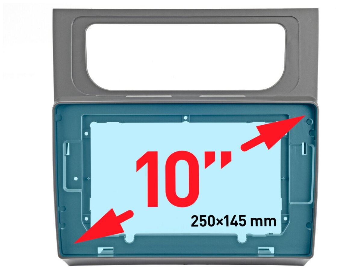 The transition frame is designed to install a 10.1 radio with a mounting size of 230:220x130mm instead of the standard multimedia